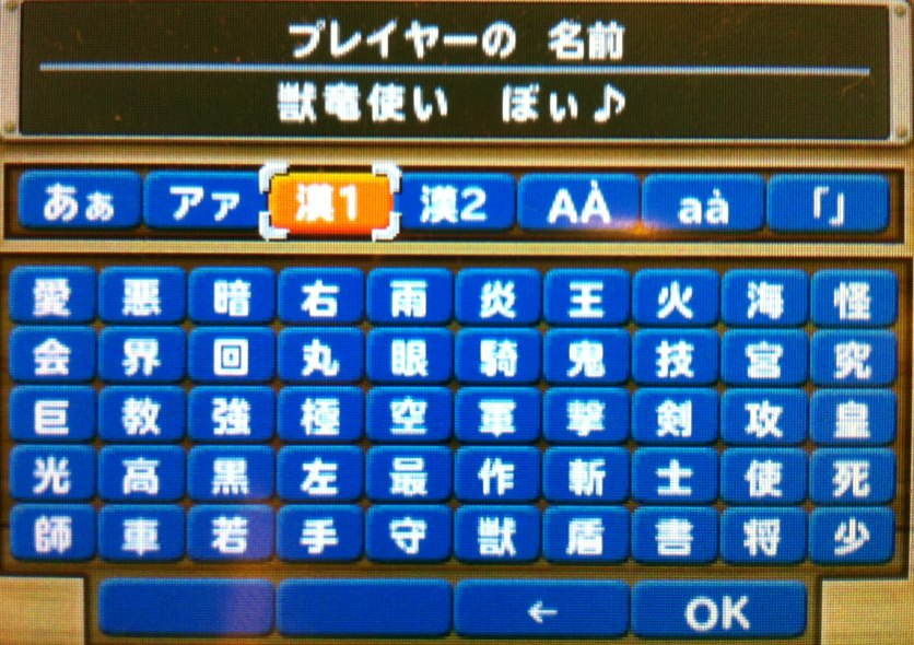 名前入力に、決められた漢字からも選ぶことが出来、称号のようなかっこいいのをつけたりも出来そうです。